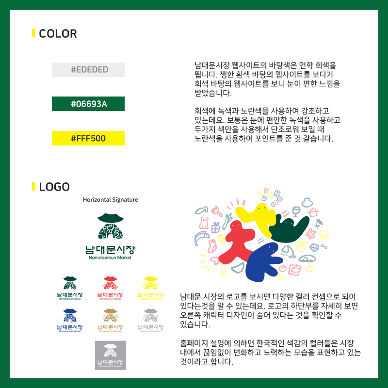 남대문 시장의 분위기와 잘 맞는 폰트라 다른 페이지에서도 활용되었다면 어땠을까 하는 생각을 해봤습니다.