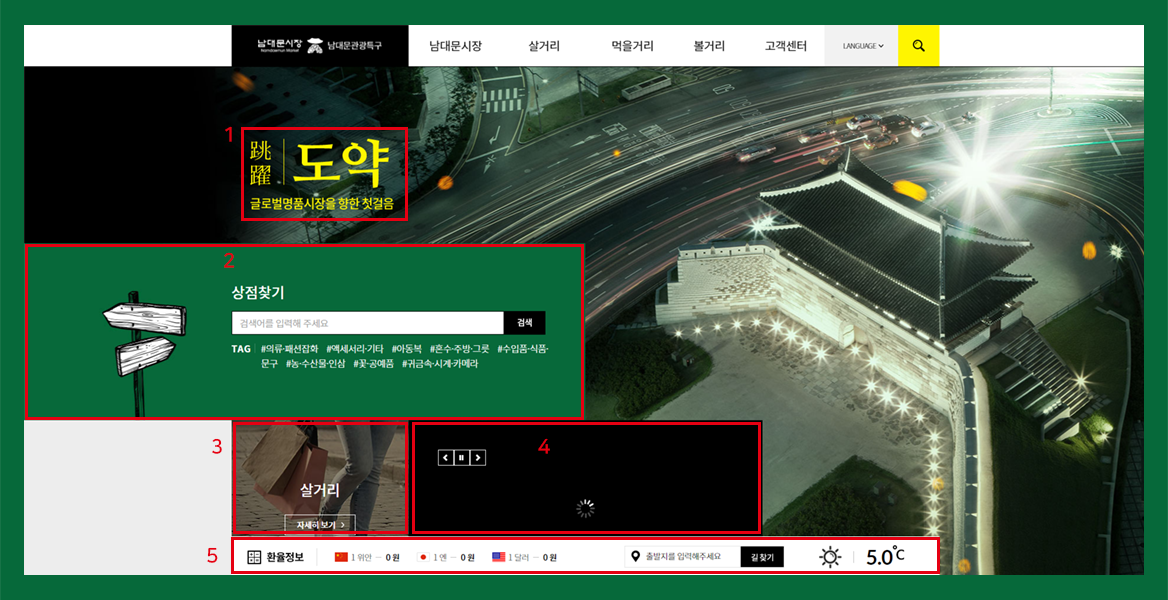 남대문 시장 홈페이지의 메인은 특이한 구조로 되어있는데요.