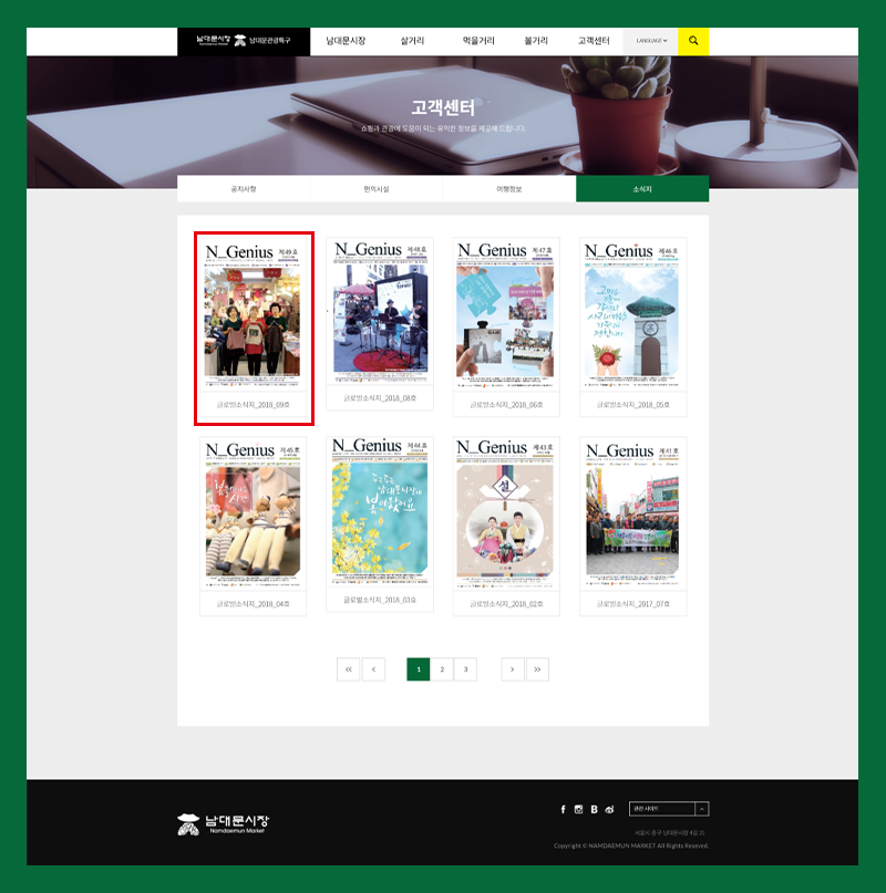 남대문 홈페이지 고객센터의 소식지 페이지입니다.