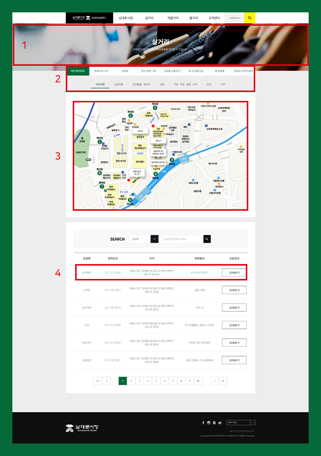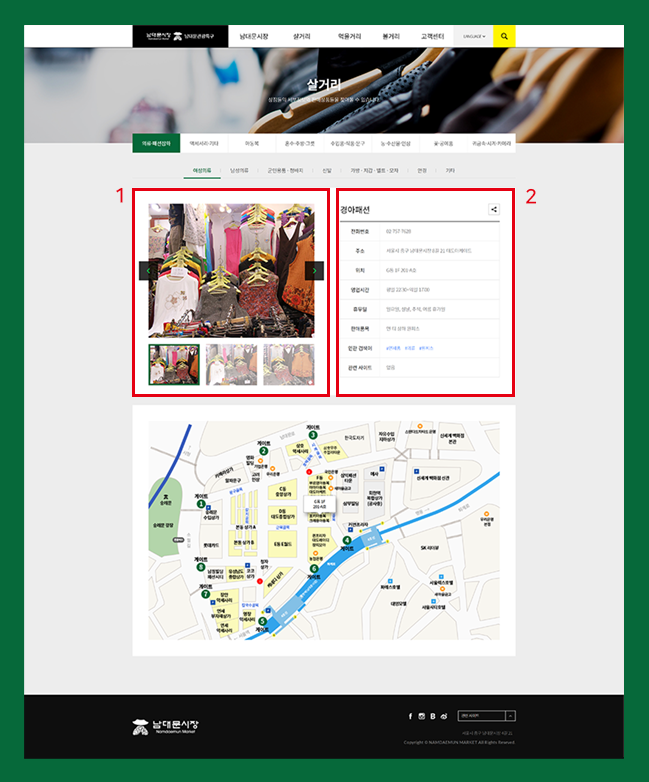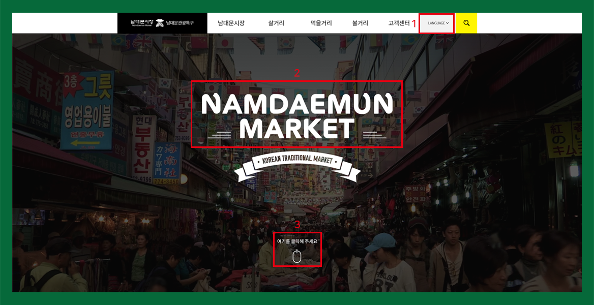 남대문 시장 홈페이지의 메인은 특이한 구조로 되어있는데요.