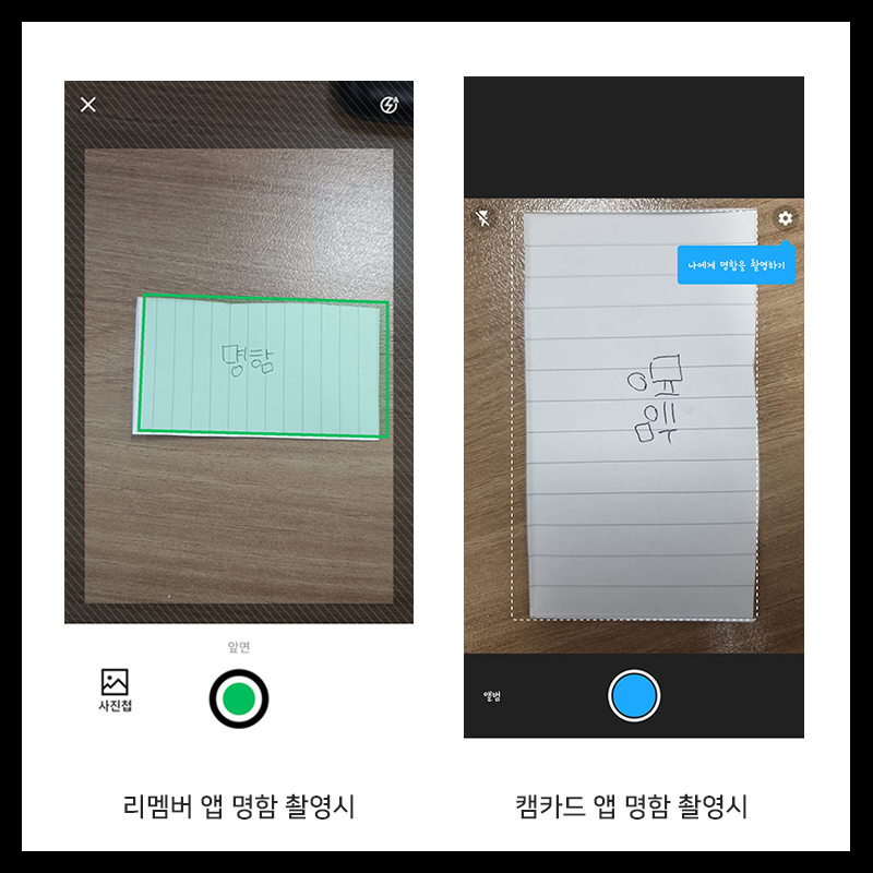 리멤버 앱과 경쟁사인 '캠카드' 와 비교를 해보겠습니다.