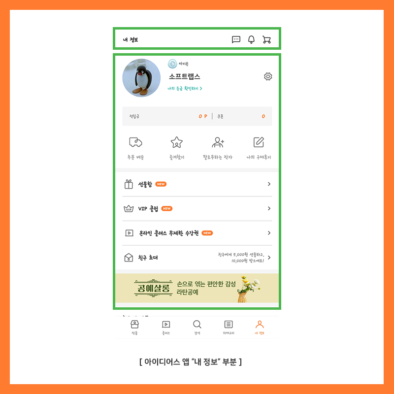 내 정보 부분은 사용자가 직접 지정할 수 있는 썸네일이 있으며