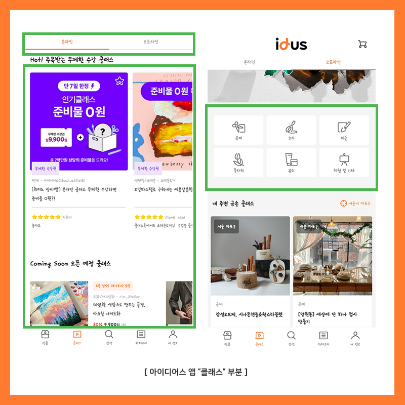 클래스는 아이디어스가 수공예품을 직접 만들 수 있는 수업, 사업을 진행하면서 만들어 졌습니다.
