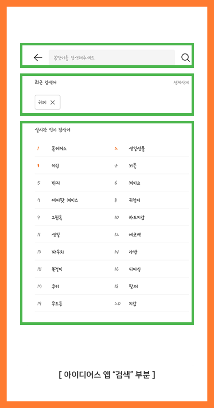 이 검색 기능을 통해 아이디어스는 고객 관점에서 바라보았음을 엿볼 수 있습니다.