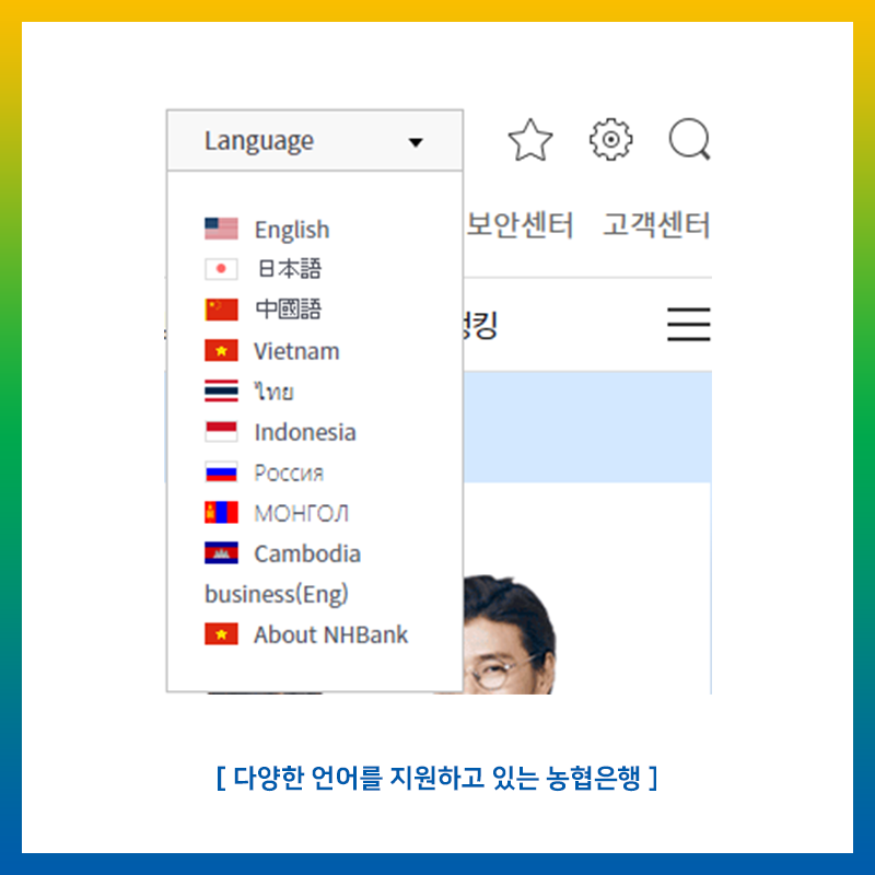 농협 인터넷 뱅킹 사이트는 4개국어 뿐만 아니라