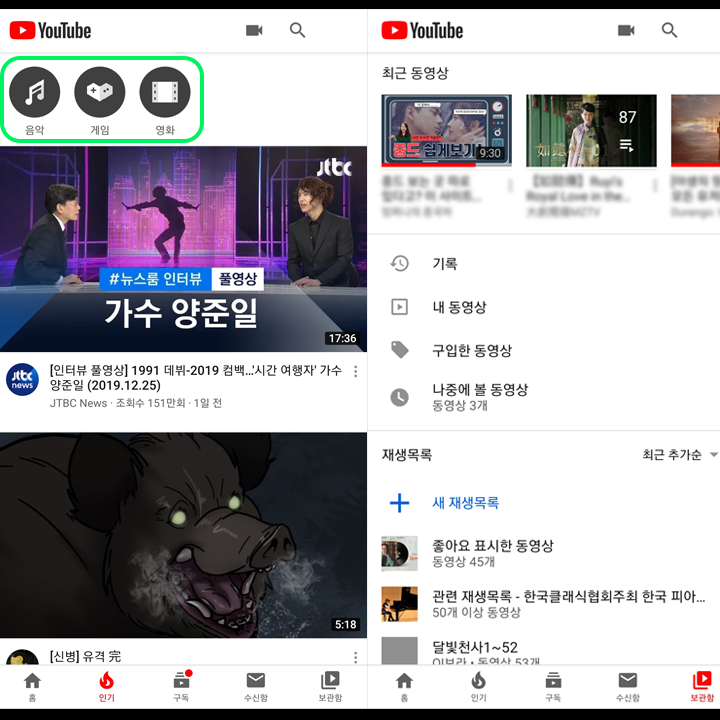 상단의 '음악, 게임, 영화'가 보이시나요?