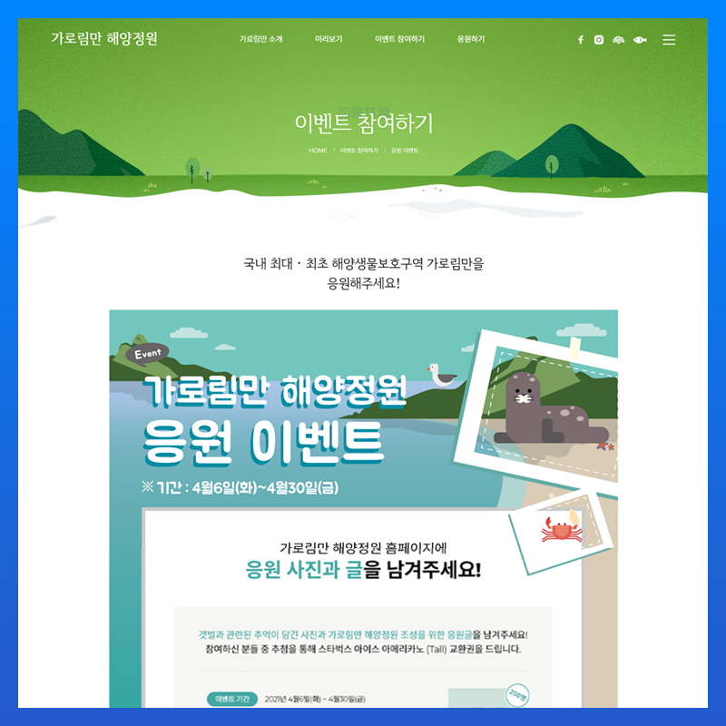 가로림만 해양정원 사이트에서는 이벤트도 진행 중인데요.