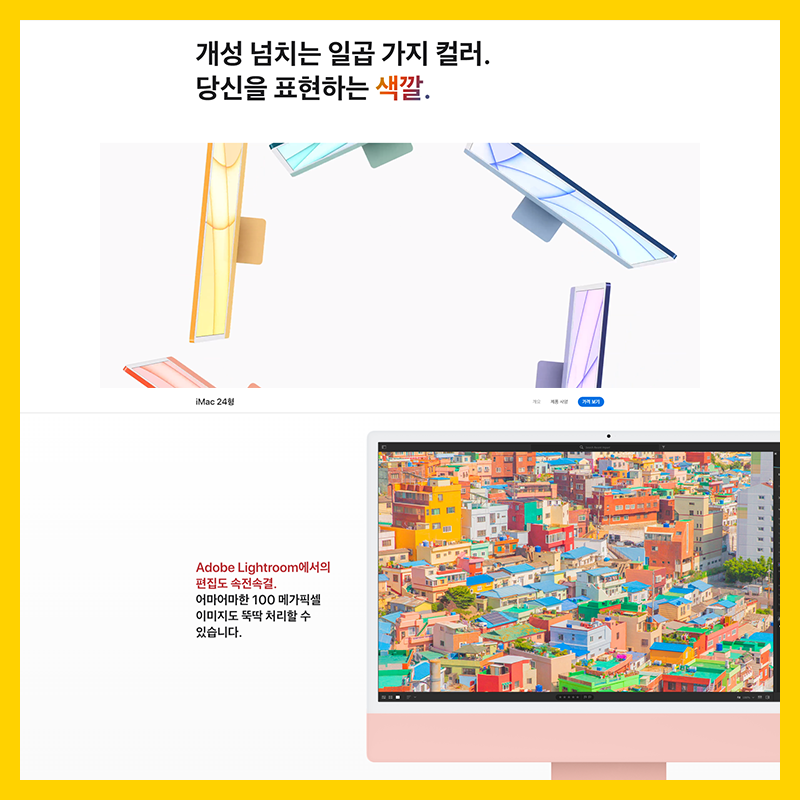 아이맥 7가지 색상과 동일시하여 컬러감에 통일감을 주었어요!