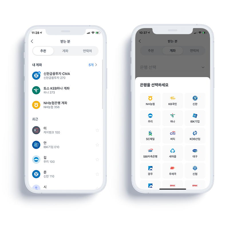 쉽고 빠르게 원하는 계좌로 돈을 보낼 수 있답니다.