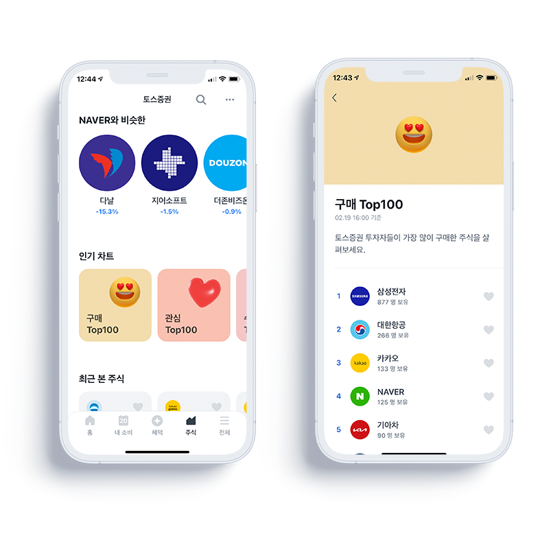 토스 주식 앱은 최대한 심플하고 직관적으로 UI를 구성하고 있어