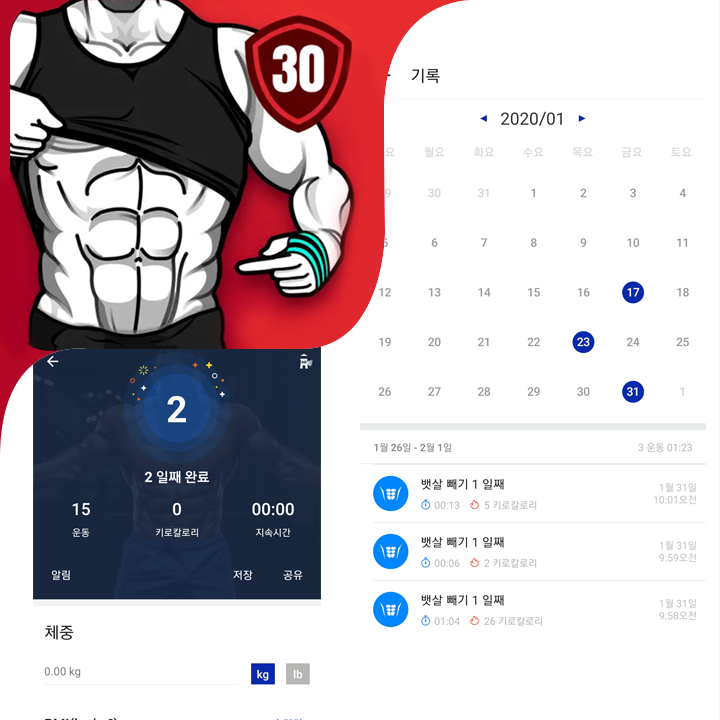 알씨타운 / "30일만에 식스팩 만들기", "30일만에 뱃살빼기" 어플 소개 본문