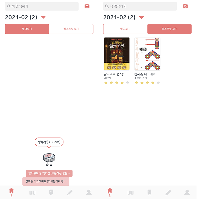 왼쪽 위에 날짜 선택을 통해 연월별로 책을 모아서 볼 수도 있고