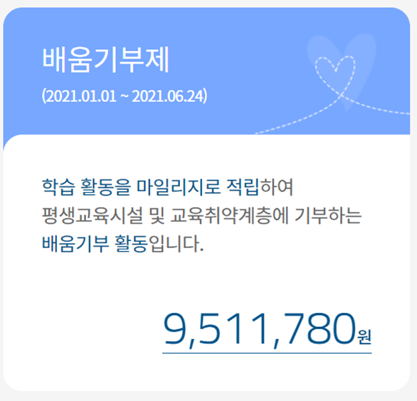 그 적립금이 취약 계층분들께 학습보조비로 전달된다고 해요!