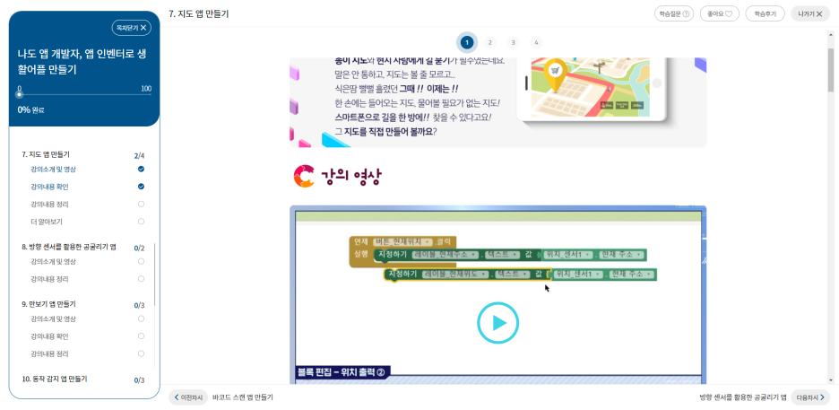 옆에는 강의 목차와 진도율, 수강 진행 상태를 볼 수 있고