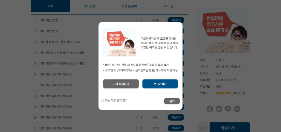 꼭 로그인을 하지 않고도 누구나 무료로 수강할 수 있다는 점이 참 편리하네요!