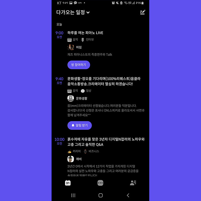 대화방의 일정이 언제 열리는지 미리 파악할 수 있고