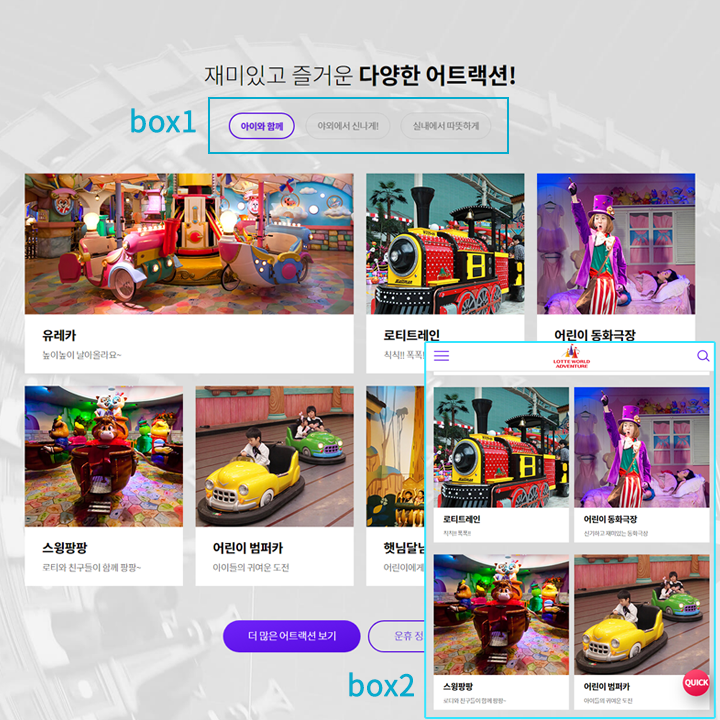 놀이공원 웹은 어떤걸 중점으로 했는지 알아볼까요!