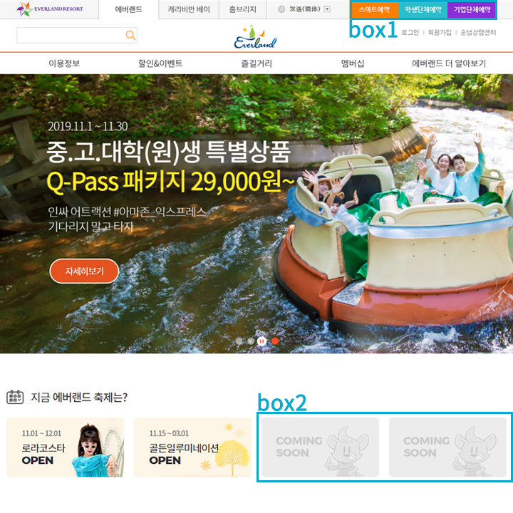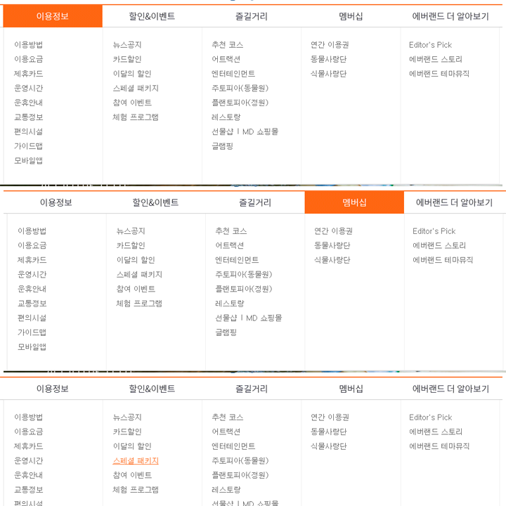 메뉴의 순서를 보면 에버랜드의 소개보다는 사용자 위주로 편성된걸 알 수 있습니다.