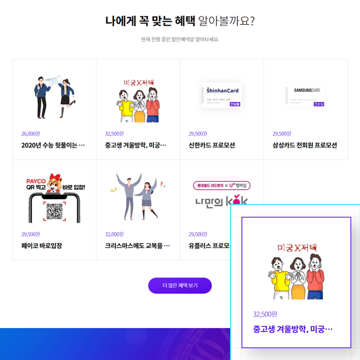 고객이 가장 궁금해하는 혜택 부분을 메인베너 바로 다음 컨텐츠로 배치했어요.