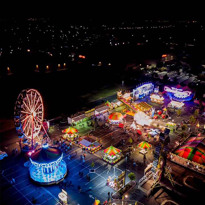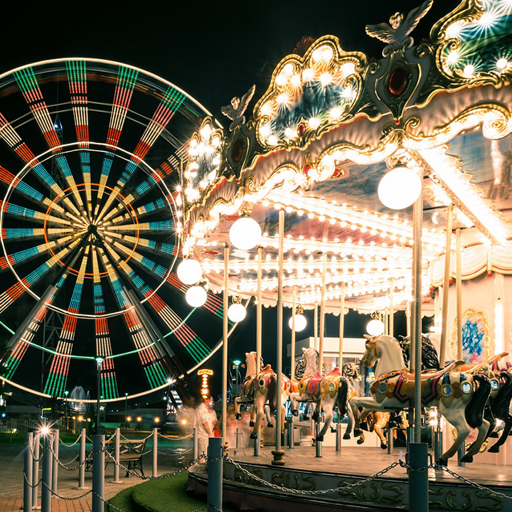어두운 밤하늘과 아름답게 돌아가는 회전목마